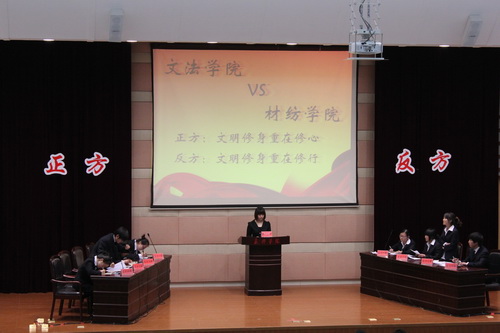 代表队与材料与纺织工程学院代表队围绕“文明修身重在修心还是修行”进行对决,最后,秀人网