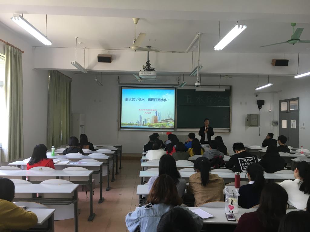 讲座中,王老师重点介绍了劣V类水的划分标准,紧接着深入浅出地为我们介绍了嘉兴市的水质的总体情况、形成原因以及嘉兴的水网水质的严峻形势。并从政府工作支持、财政支持等多方面介绍整体的治水情况。