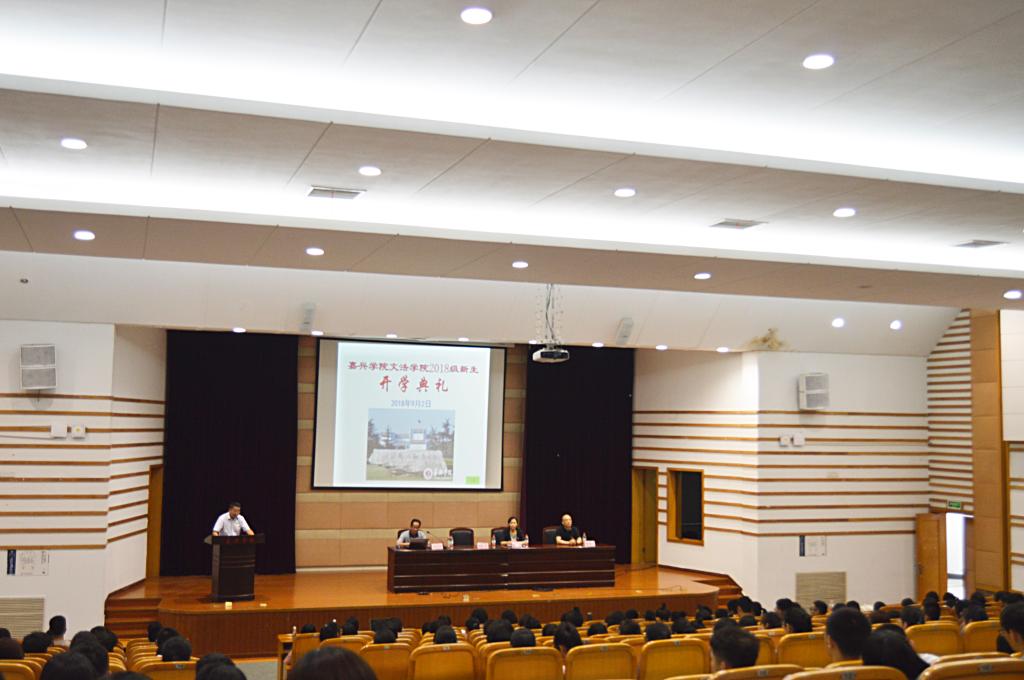 典礼上首先由教师代表中文系党支部书记徐琳老师发言。徐琳老师恭喜所有新生在自己的不断努力下进入了嘉兴学院,实现了自己十年寒窗不懈追寻的大学梦。徐琳老师提出期望:期望新生们在大学生涯中能够积极进取,艰苦付出,持之以恒,满载自信,勇于超越,敢于创新。