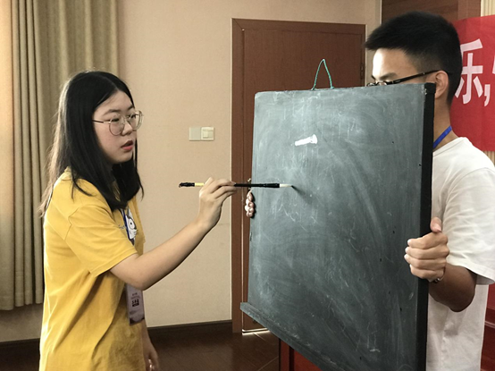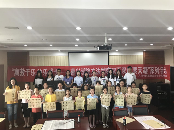7月7日上午,嘉兴学院秀人网 “双百双进”暑期社会实践团的同学们在嘉善天凝镇的杨庙小学开启了主题为“寓教于乐,快乐成长——国学下基层”活动,活动中嘉兴学院中文系的志愿者们给大家开设了软笔书法课堂与汉服课堂,向同学们普及了中国传统文化知识。这是志愿者与嘉善天凝镇团委共同对接承办的活动,共分为“知书”、“知礼”两个环节。过程中,还设置了汉字游戏,孩子们进入了“找错字”的游戏环节。