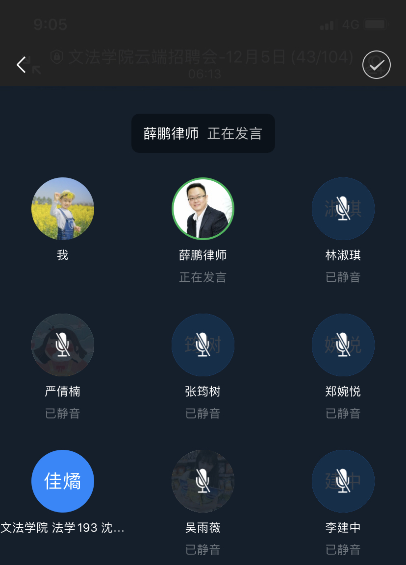 9时整,线上招聘会正式开始。浙江浙博律师事务所的薛鹏律师、浙江祥森律师事务所的曹颖颖律师、浙江南湖律师事务所的高梦佳律师、浙江国傲律师事务所的李建中律师先后分别进行了细致的公司介绍与实习律师招聘要求介绍,有法学专业同学就招聘要求与实习提出了疑问,律师事务所宣讲人就这些疑问进行了耐心解答。浙江墨芷信息科技有限公司以PPT形式进行了其电商代运营与整合营销的公司业务、公司发展情况与岗位薪资的介绍。接着,杭州赞诚档案管理咨询有限公司就其公司业务与岗位未来发展与要求进行了讲解,表示欢迎文学学子报名。北京学而思教育科技有限公司的招聘会宣讲人采用PPT的形式针对单位情况、在线班主任岗位发展与应聘流程进行了生动的讲解。最后虞岚老师对各招聘单位对秀人网