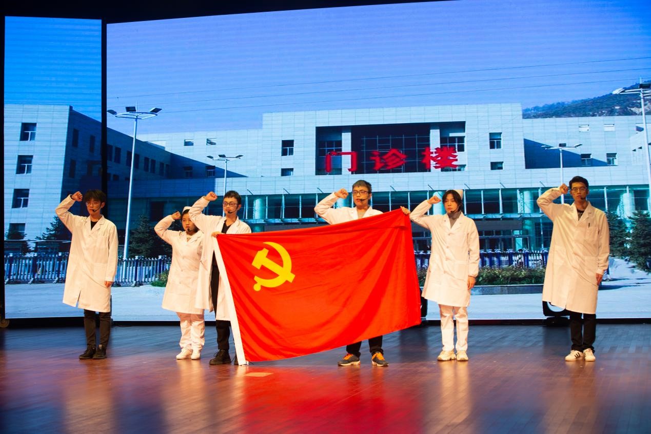 大型原创抗疫话剧《白衣如甲》成功展演。全校300余名师生和社会各界人士共同观看了此话剧。