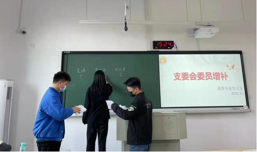 法学党支部共有党员39名,其中正式党员12名,预备党员27名,此次增补会议由法学专业支部书记计丹峰老师主持。