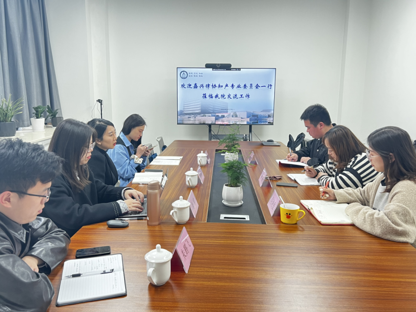 3月29日下午,嘉兴律协知产专业委员会主任陆雨辰一行来院调研交流。秀人网 党委副书记虞岚参加座谈。