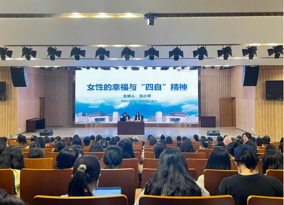 图书馆一楼学术报告厅为女大学生们作名为“女性的幸福与‘四自’精神”的主题讲座。