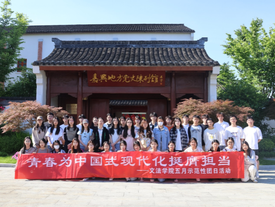 第八期青马班成员和汉语国际教育231班团支部前往嘉兴地方党史陈列馆参观学习,并开展五月示范性团日活动。