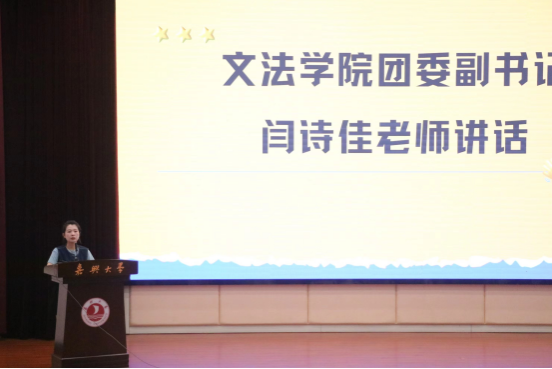 在大会第三环节院团委副书记闫老师作总结发言,对于本次暑期社会实践,闫老师提出了三点要求:一是鼓励同学们积极参加多样的社会实践项目以培养创新能力,同时增强社会责任感和使命感;二是希望同学们在参与过程中将理论知识与实践相结合,不断探索并创新实践的方式方法;三是期望同学们学会反思与总结,通过实践活动开拓视野,将实践成果转化为实践动力。