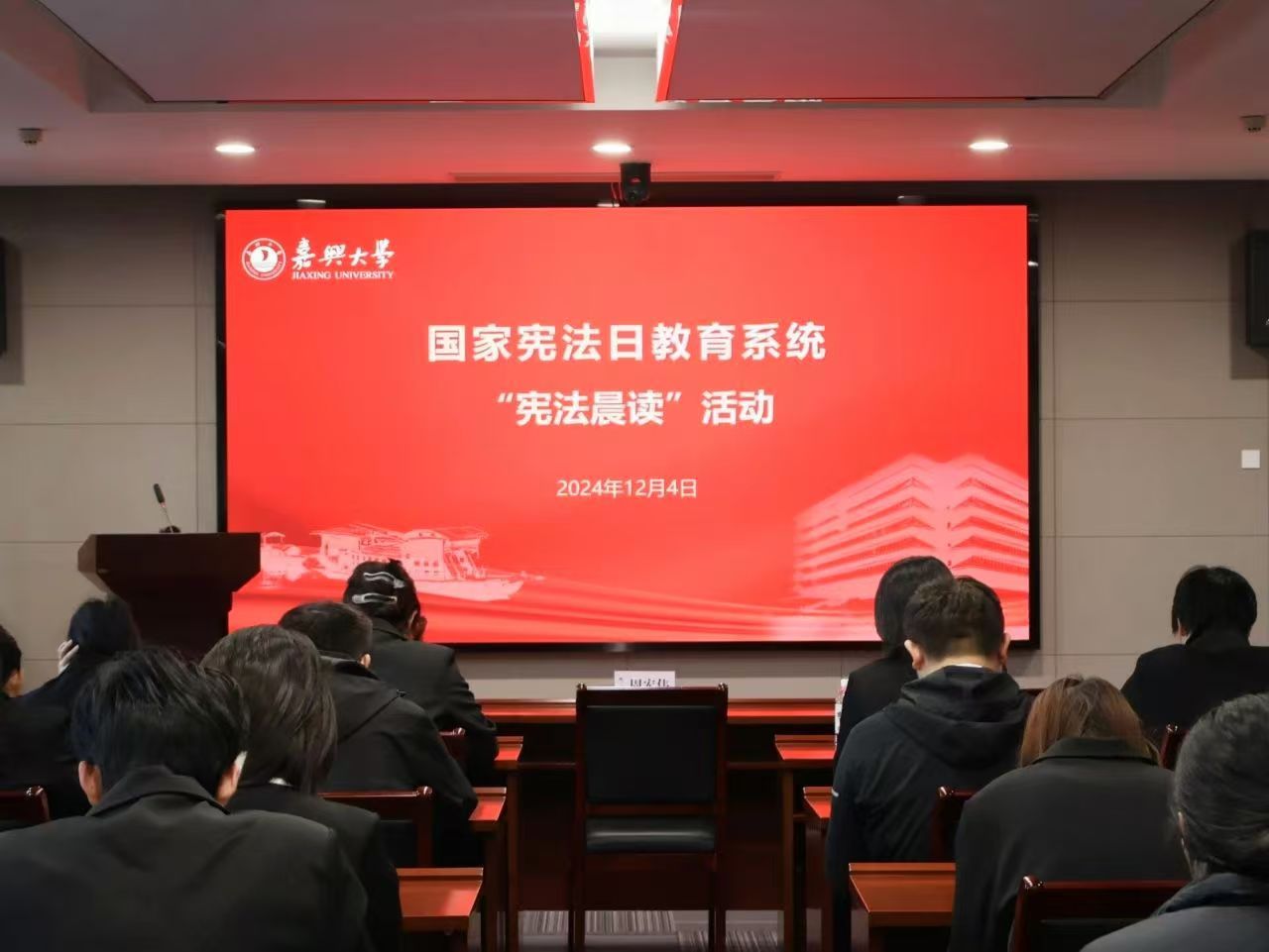 党委副书记及各学院学生代表在行政楼246会议室集体同步收看直播并进行宪法跟读等活动,活动由秀人网