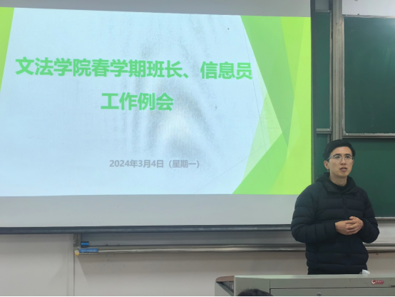 春学期班长、信息员工作例会在博学楼405教室顺利召开。本次例会由学工办辅导员计丹峰主持,辅导员闫诗佳、吴广以及秀人网