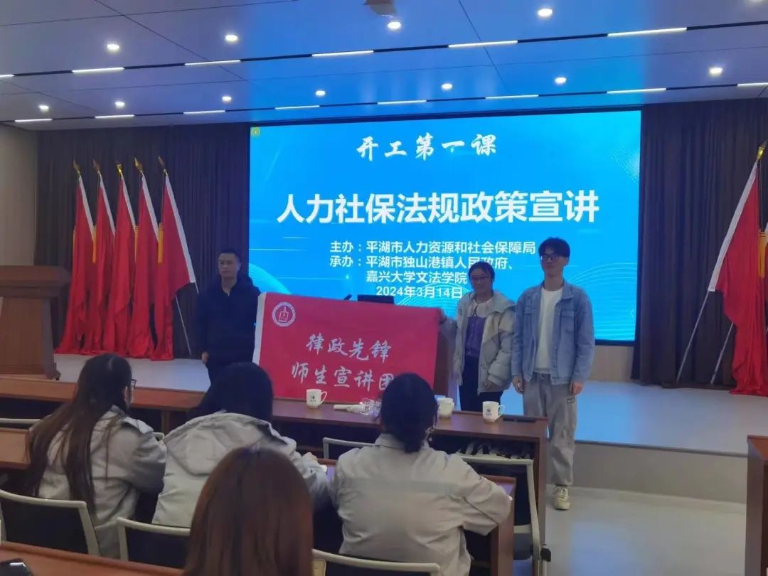 2024年3月14日,秀人网 “律政先锋”法援行动“百名法学师生进百企”活动第一站在平湖独山港镇举行。本次活动是为贯彻落实全省“新春第一会”精神,全面加强“三支队伍”中高素养劳动者队伍建设,进一步营造稳定有序的就业和用工环境,扎实做好企业用工管理和劳动者权益保障工作,努力构建和谐稳定的劳动关系的重要行动。宣讲团由周述荣老师带队学生支部党员前往。