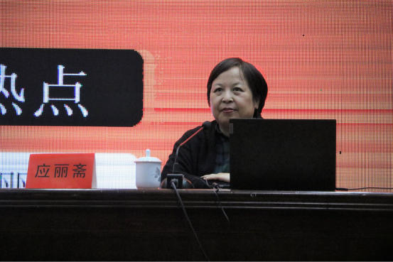 本场讲座,应丽斋主任结合新闻报道,从“眼看、耳听、思考”三个方面切入。首先,她以“老人去医院看病难”为例,对老龄化社会问题进行了深入浅出的分析,应主任指出同学们要把自己与社会链接起来,将自己深深扎根于社会,透过社会现象看到社会问题的本质。接着,应主任认为同学们还应善于辩证地倾听,结合时代背景去听,结合自身处境去听,从新闻报道严肃的话语中去咀嚼出潜在的深意。最后,她强调“如何思”的问题。她叮嘱同学们,要想准确把握新闻热点,需要有三个库:资料库、专家库、线索库;同学们平时要注重积累,积淀知识和阅历,并拓宽自己的社交圈。在讲座的尾声,应主任和同学们热烈互动。