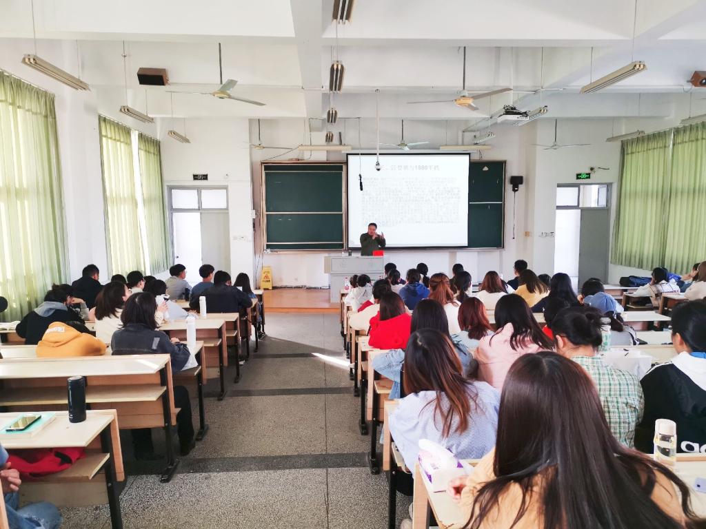 副院长童建华主持,学院相关专业老师出席,汉语言文学专业近百名学生到场聆听。