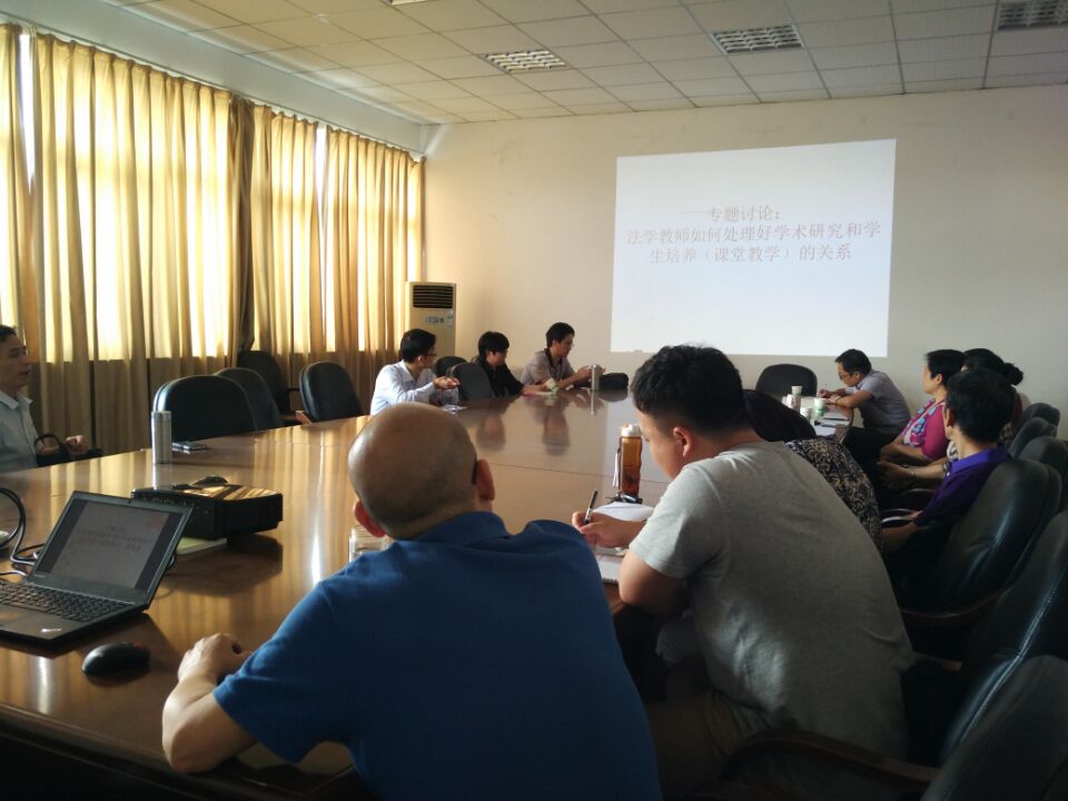 院长欧阳仁根做了“践行两学一做,立足岗位出实效”的主题发言,提出党员教师要按照“两学一做”要求用心做,立足岗位用力做。同时全体党员针对 “法学教师如何处理好学术研究和学生培养(课堂教学)之间的关系”进行了讨论,党员教师们通过学习研讨,充分认识到做“四有”好老师,做学生健康成长的指导引路人是每个党员的责任。这次主题活动使党员们找到了到党建与人才培养的切入点,纷纷表示将立足岗位,运用专业服务学生服务人才培养,为学院的发展贡献力量。