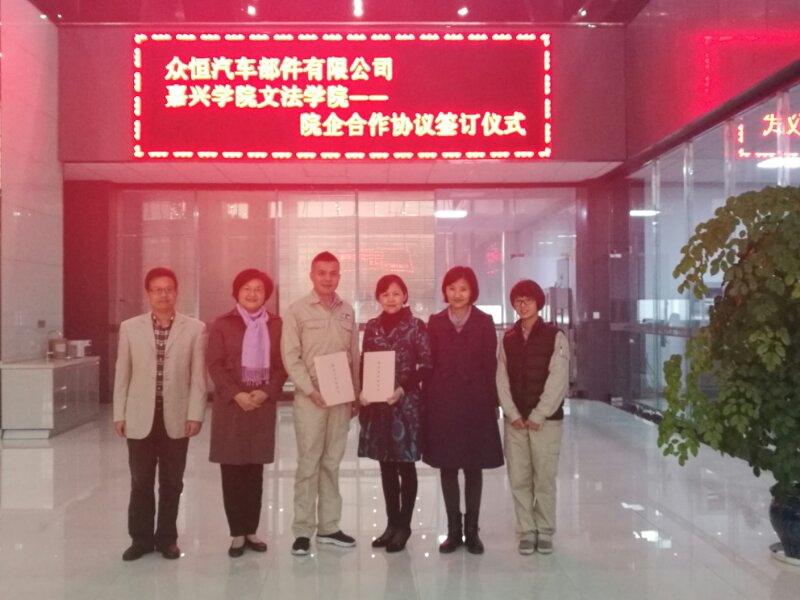 分别与浙江汇信实业有限公司董事长蒋加伟、众恒汽车部件有限公司的董事长蔡国伟签订了院企合作协议,嘉兴市侨留联副主席娄新生、联谊处处长李勇军、秀人网