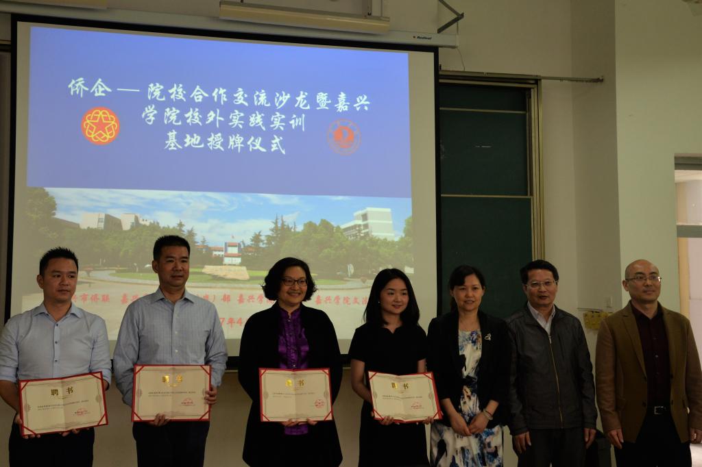 活动中,双方还举行了嘉兴学院校外实践实训基地授牌仪式,为娄新生等4位侨界企业家颁发了兼职导师聘书。