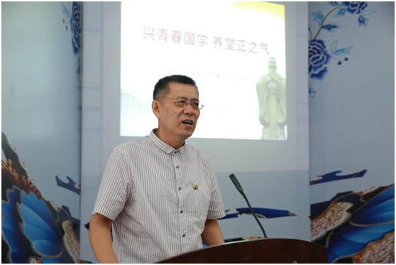 王大千作题为《兴青春国学,养堂正之气》的主题演讲,他指出,今天的文化传承要委以青年重任,青年兴,则国家兴,青年强,则国家强。国学教育是对青年人进行养正教育,能让青年人感受传统文化和国学的魅力,读好书,写好字,做好人。