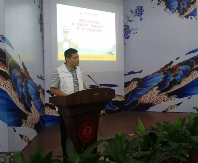 6月22日上午9点全国孔子学堂培训暨“青年之声·青春汉字节”第一站走进嘉兴学院活动开幕式正式开始。中国孔子基金会常强主持活动,介绍活动基本内容,及孔子学堂与嘉兴的渊源。他说,这必将是一次难忘的文化之旅。