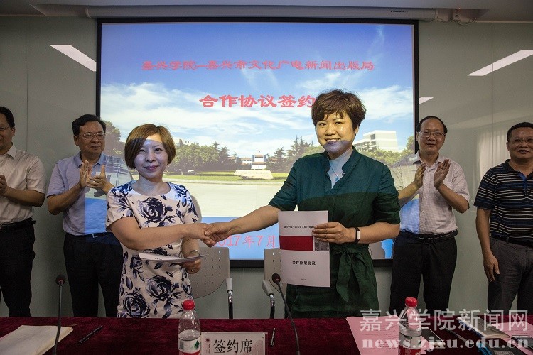 会上,双方签署了《嘉兴学院—嘉兴市文化广电新闻出版局合作协议书》,并共同为“嘉兴地方文化研究中心”揭牌。市文化广电新闻出版局等十家单位接受了“嘉兴学院校外实践实训基地”授牌。
