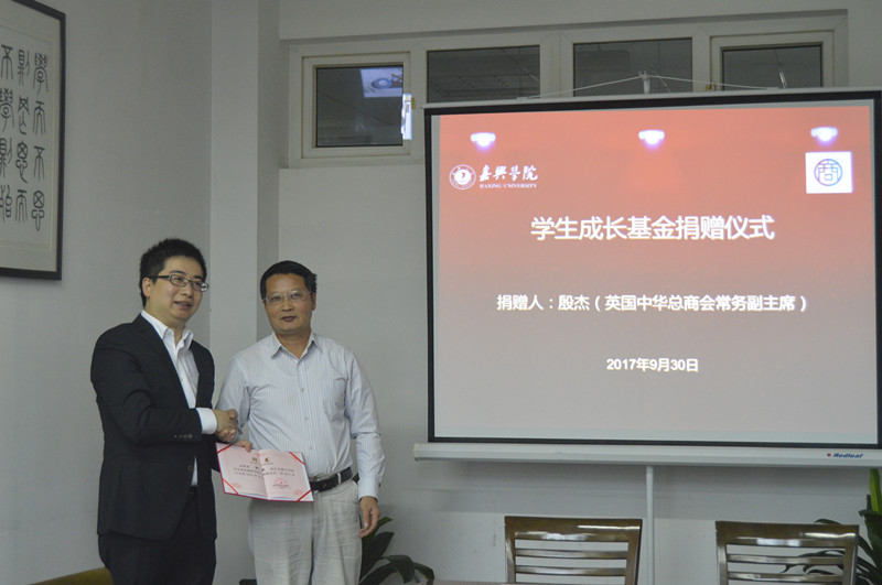 9月30日上午,殷杰先生爱心助学捐赠仪式在梁林校区1号楼446会议室举行。英国中华总商会常务副主席殷杰先生、嘉兴市侨联主席娄新生、嘉兴市侨联李勇军、秀人网