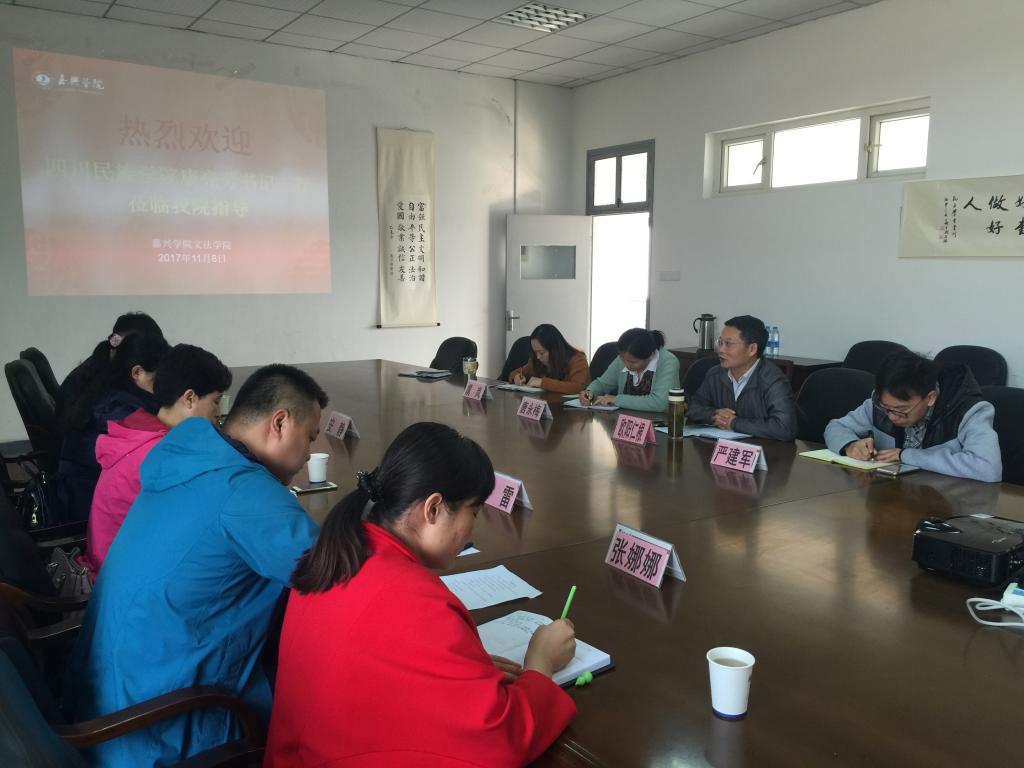 2017年11月8日,四川民族学院法学院、马克思主义学院党总支书记康亮芳一行来秀人网 调研交流。秀人网 院长欧阳仁根主持召开调研交流会。学院法学系副主任唐永梅及学院三办主任参加了会议。会上,两院就法学专业师资队伍建设、人才培养方案改革、专业课程建设改革、实验室建设、校地合作实践基地建设、第三方教学质量评价体系等方面的内容进行交流研讨。同时两院希望借此契机进一步加强交流与合作,互相学习。会后,学院还带领他们参观了学校红船研究中心。