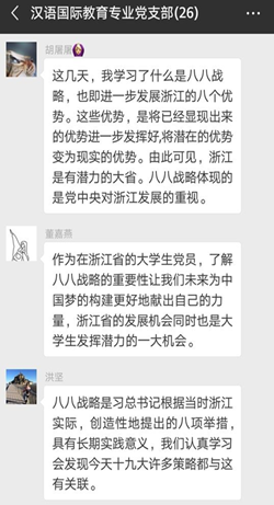 党委组织学院各基层党支部师生党员观看学习了“八八战略15年”政论纪录片和视频短片,重温“八八战略”的伟大战略思想,深刻感悟习近平新时代中国特色社会主义思想在浙江大地的萌发与实践,并在网上展开了热烈的讨论。