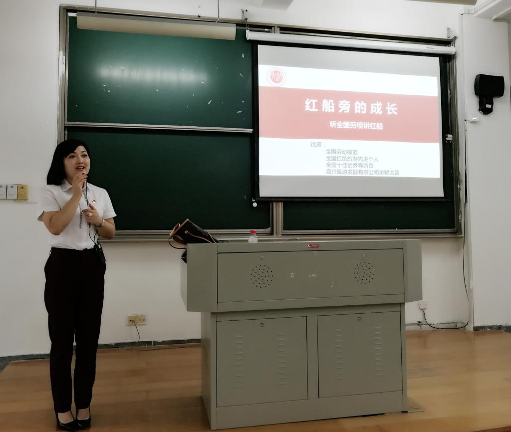 邀请到了全国劳动模范、全国红色旅游先进个人、全国十佳优秀导游员、嘉兴旅游发展有限公司讲解主管徐雁,为全体学生党员干部讲授红船身边事,授课教室座无虚席。秀人网