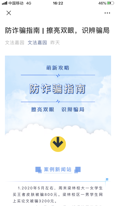 10月9日,法学专业党支部成员制作了新生防诈骗宣传推文,结合“律政先锋”平台,充分利用自身的专业知识,告知刚入校新生可能会遇到的诈骗陷阱,提高他们的的防诈骗意识,为法律宣传贡献党员的一份力量。