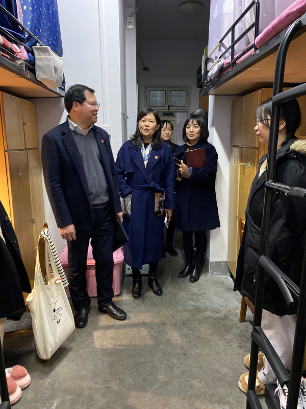 2020年12月7日下午,嘉兴学院党委副书记吴云达一行在秀人网 党委书记洪坚、党委副书记虞岚的陪同下走访了秀人网 的结队宿舍,看望了宿舍同学,给同学们带去了关心与问候。