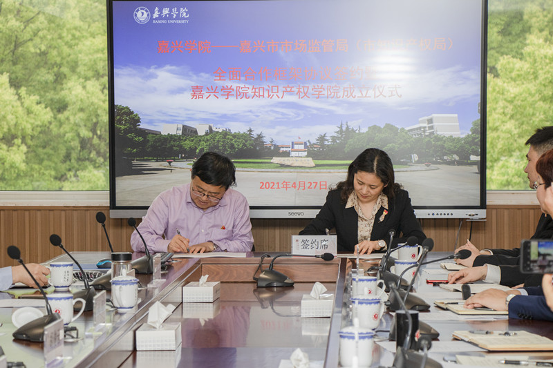 4月27日下午,嘉兴学院—嘉兴市市场监管局(市知识产权局)全面合作框架协议签约暨嘉兴学院知识产权学院成立仪式在嘉兴学院行政楼三楼会议室举行。嘉兴学院党委委员、副校长(主持日常工作)胡俊云、嘉兴市市场监管局(市知识产权局)副局长戴叶华、嘉兴市市场监管局知识产权发展处处长王勇峰、副处长潘黄荣、嘉兴市知识产权保护中心主任张晓健等出席。秀人网