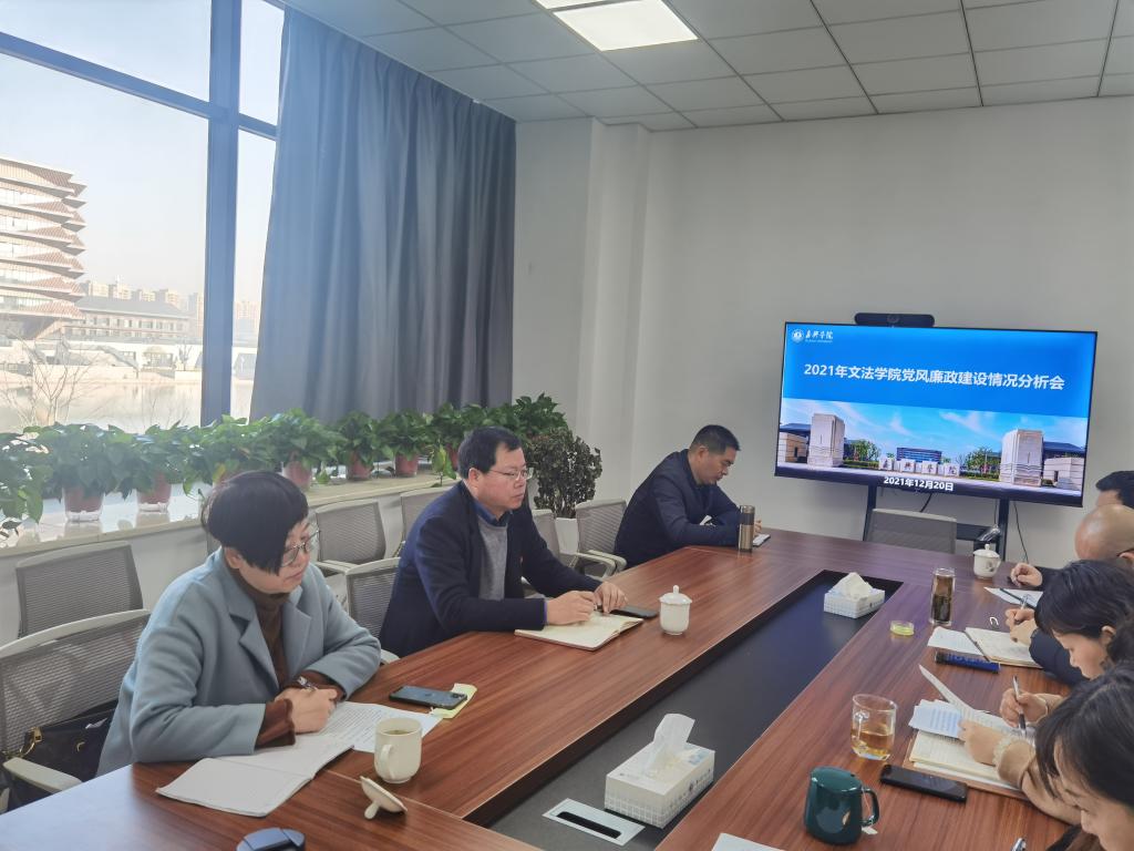 党委在厚德楼268会议室召开了2021年党风廉政建设情况分析会。嘉兴学院党委副书记吴云达、校纪委委员费锦红到会指导。本次会议由学院党委书记洪坚主持,班子成员童建华、屈正林、虞岚参加会议,特邀监察员宋伟杰列席会议。