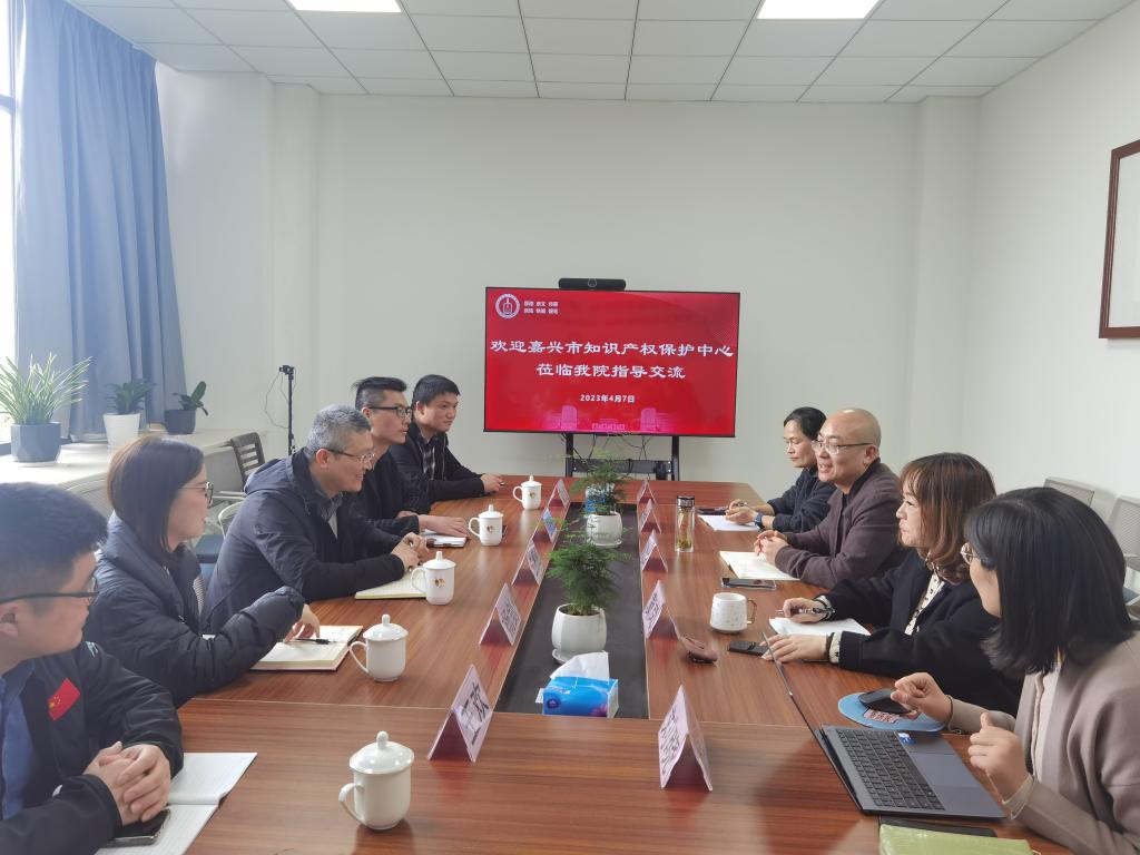 4月7日下午,嘉兴市知识产权保护中心王勇峰主任等一行5人来秀人网 考察交流。学院副院长(主持工作)童建华,党委副书记虞岚出席座谈。法学系教师李凤琴、刘晓、周述荣参与交流。