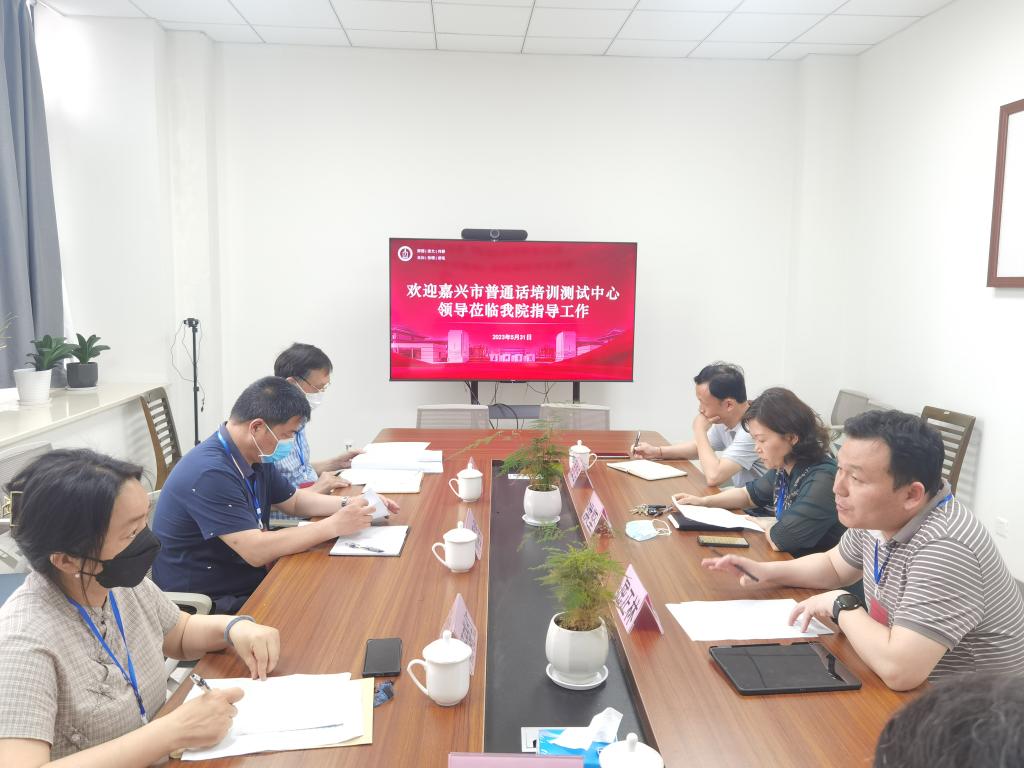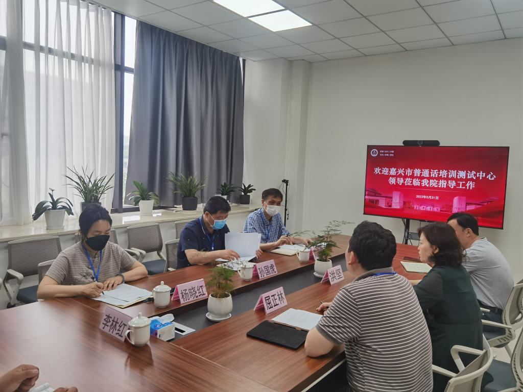 5月31日上午,嘉兴教育学院副院长、嘉兴市普通话培训测试中心主任孙国虎、嘉兴教育学院教务处长周志荣等一行3人来到嘉兴学院普通话测试站,检查测试工作并进行座谈交流。学院党委书记洪坚、副院长屈正林、继续教育学院副院长吴维佳等出席座谈。