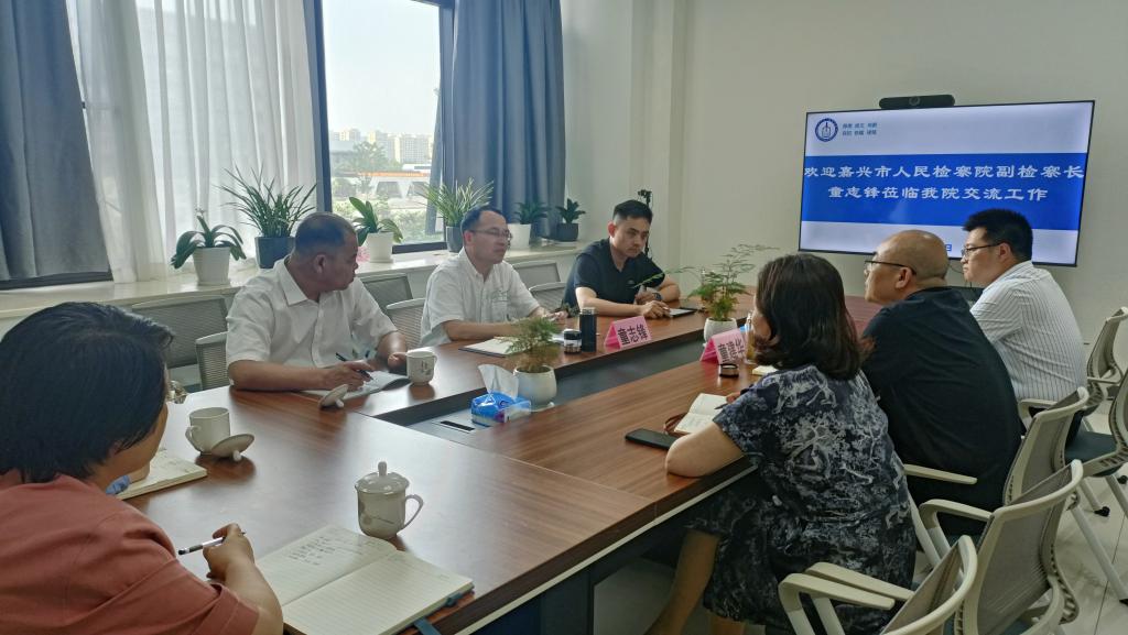 6月5日下午,嘉兴市人民检察院副检察长童志锋一行来秀人网 交流检校合作事宜。院党委书记洪坚、副院长(主持工作)童建华出席会议。