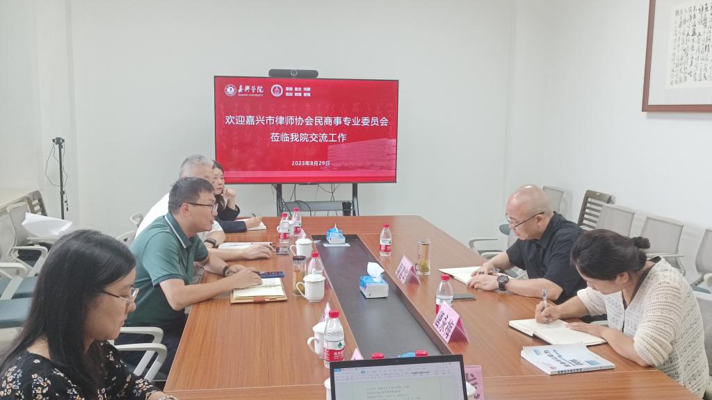 8月29日上午,嘉兴市律师协会副会长岳丛啸等一行6人来秀人网 交流工作。学院副院长(主持工作)童建华,法学系主任唐永梅,嘉兴市律协民商事专业委员会主任徐海明律师等参加座谈。