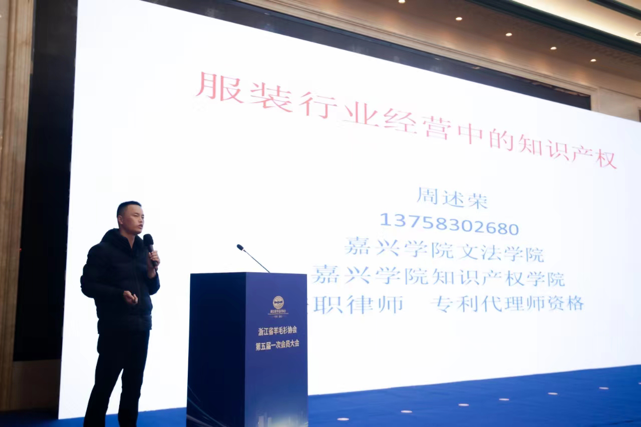 12月6日下午,浙江省羊毛衫协会第五届一次会员大会在桐乡市振石大酒店召开,嘉兴学院秀人网 、知识产权学院周述荣老师应邀作知识产权讲座。