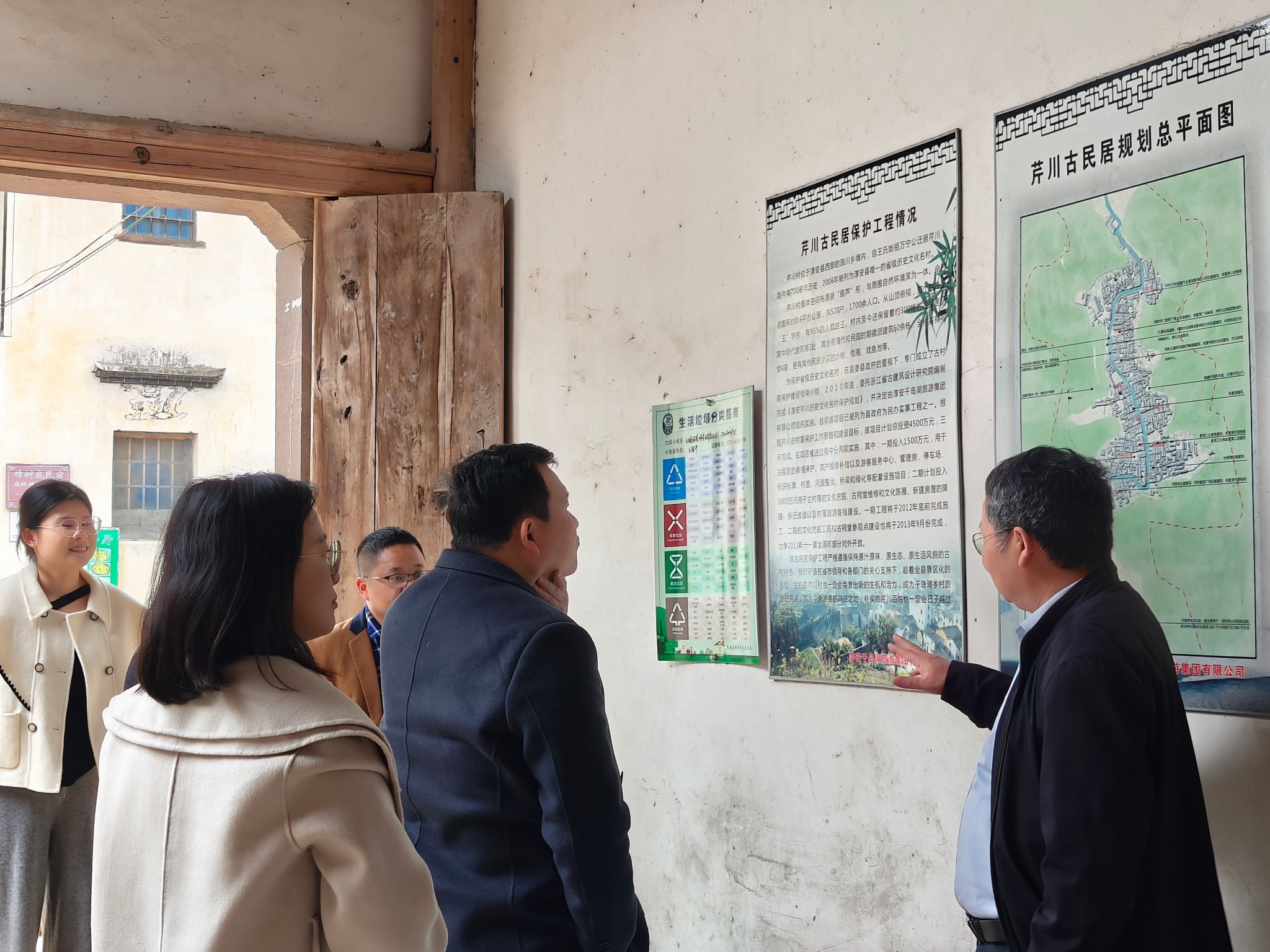 3月23日上午,调研组一行人在县委宣传部、社科联综合科副科长(主持工作)蒋奇的陪同下到浪川乡中国历史文化名村芹川古村,详细调研古村落、古民居规划、传统文化、芹川非遗手工传统制作工艺。姜家镇郁川村索面非遗展示馆、福寿面共富工坊,考察唐敦禄故居红色文化打造农文旅融合产业和数字乡村,在新四军支部召开座谈,对该村振兴共富进行深入交流。