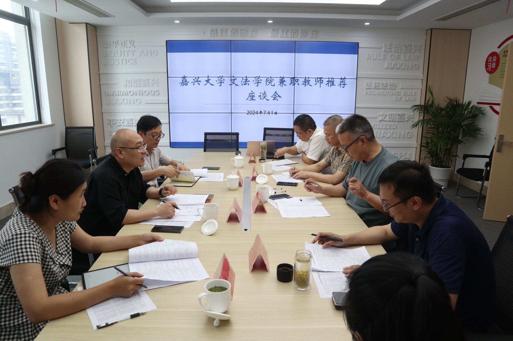 童建华就兼职教师的政治素养、业务能力、任职年龄等提出了聘任原则,双方共同就57位报名律师人选进行了逐一商讨,确定了拟聘任名单。