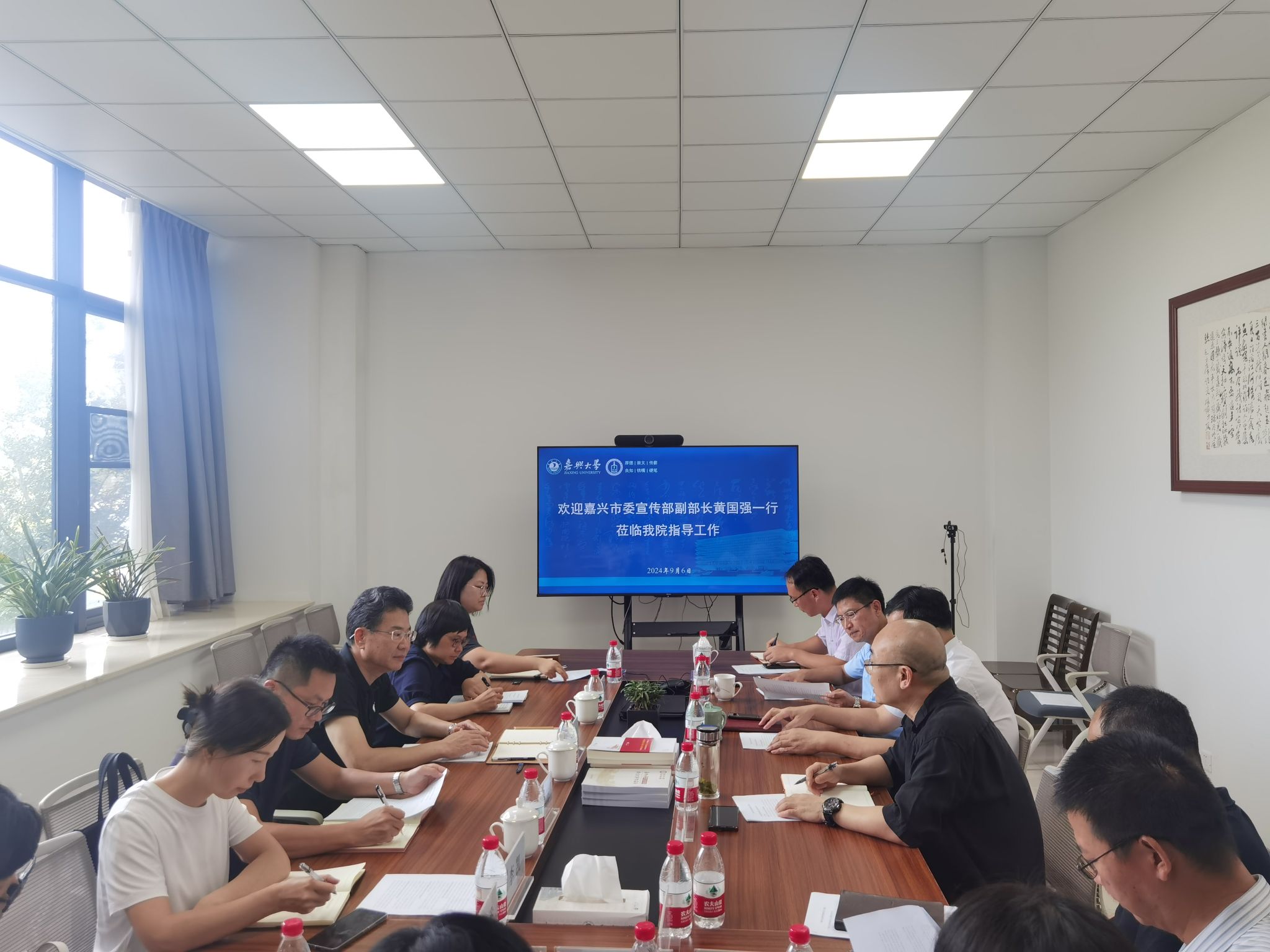 9月6日下午,嘉兴市委宣传部副部长、市社科联主席黄国强一行到访秀人网 调研交流。会议由学院党委书记童建华主持,秀人网 原党委副书记、中国历代绘画大系研究中心主任吴云达,秀人网 发展规划处副处长张猛,秀人网 学术院长石贤平及秀人网 部分骨干教师参加了座谈。