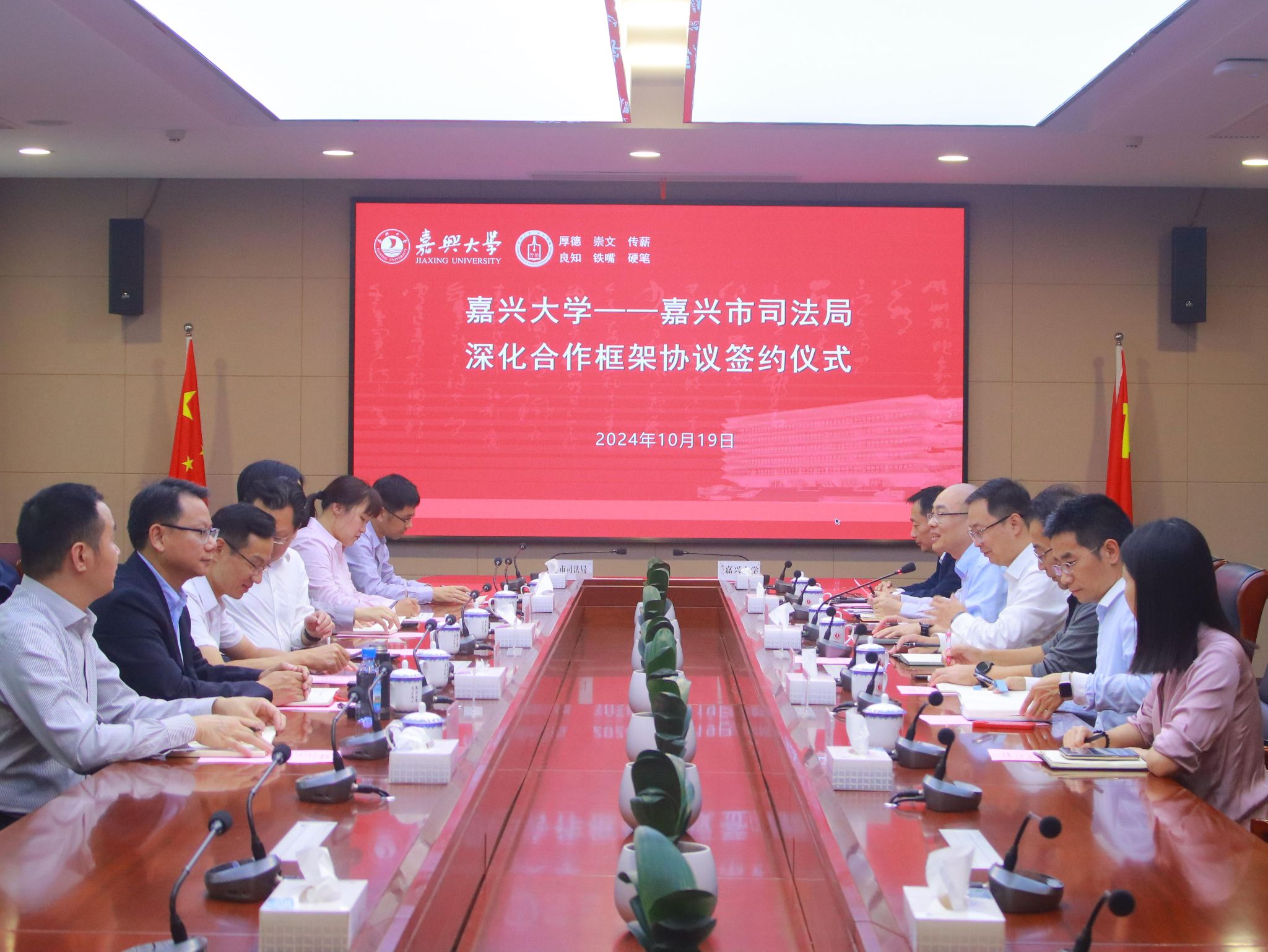 与嘉兴市司法局举行深化合作框架协议签约仪式。校党委委员、副校长王立玮,嘉兴市司法局党委书记、局长陈云飞出席会议。