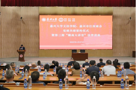 行政楼一楼报告厅举行党建共建签约仪式,并举办第三期“赣商大讲堂”法律讲座。活动旨在深化校企合作,推动党建与业务融合发展,为企业家与高校搭建法律知识交流平台。嘉兴市工商联非公有制经济服务中心主任黄克飞,嘉兴市江西商会党支部书记胡昌军,秀人网