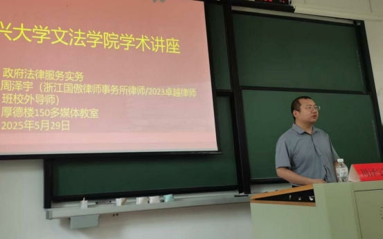 作题为“政府法律服务实务”的讲座。该讲座是2023卓越律师班系列讲座之一。2023卓越律师班、法学专业、知产专业的近60名师生参加,讲座由学院党委书记童建华主持。