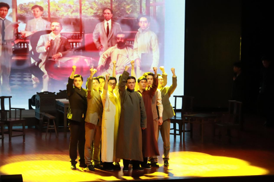 随后,话剧《初心》正式拉开帷幕。该剧自2017年12月9日首演以来,已在全国各地巡演170余场,深受广大师生和社会各界好评。此次演出由新一代青年学子倾情演绎,在传承中创新,在致敬中升华。演员们用饱满的情感和精湛的表演,再现了中共一大代表们在风雨如磐的年代坚守理想、点燃星火的光辉历程,生动诠释了“红船精神”的深刻内涵。