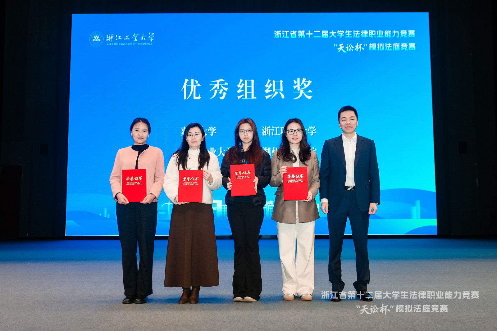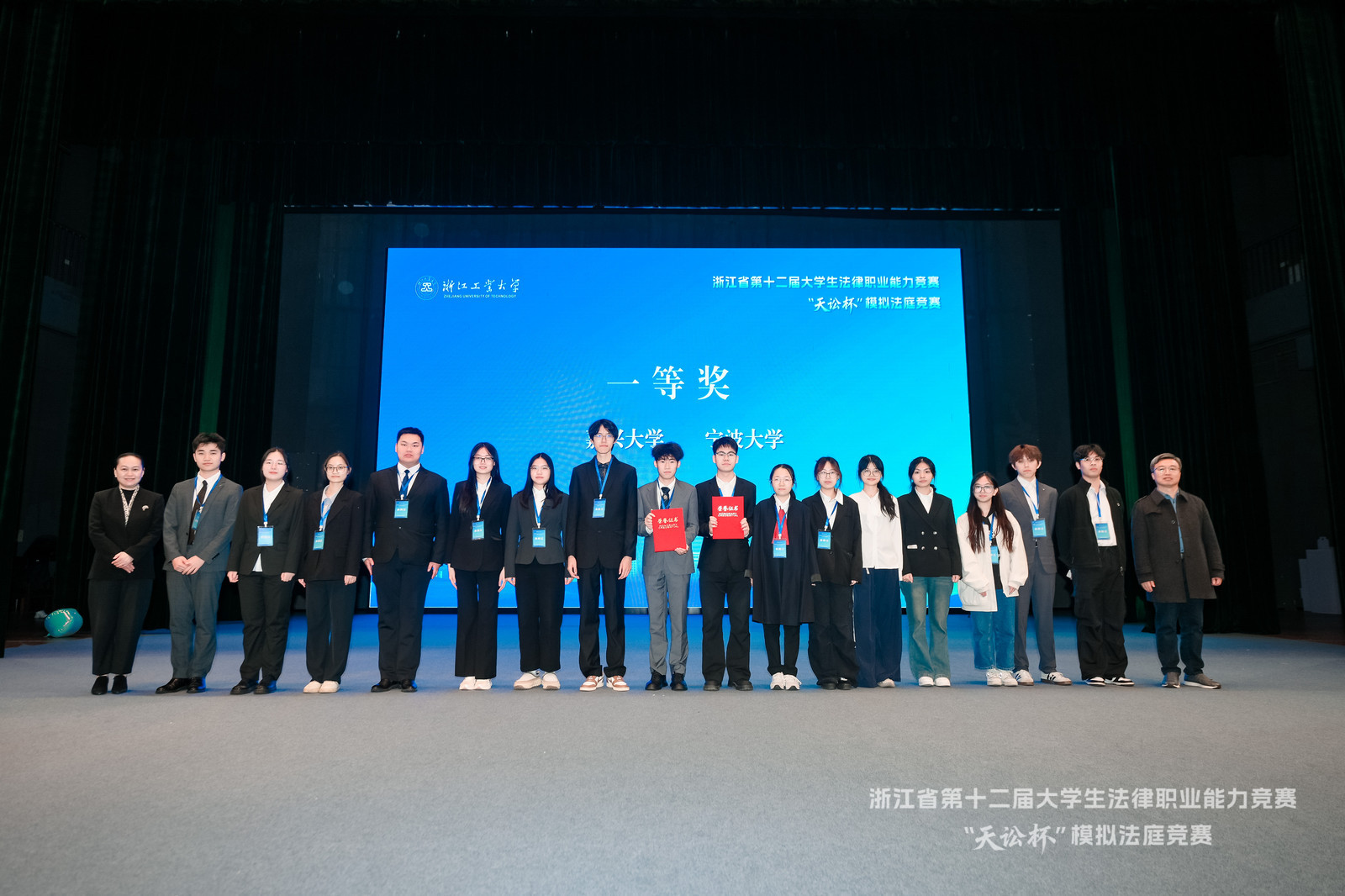 据悉,浙江省大学生法律职业能力竞赛作为目前国内唯一常规举行的综合类法律专业赛事,分为辩论类、征文类、模拟法庭类、演讲类四个项目,是提升浙江省法科大学生综合素质,促进法学学科教学改革的代表性比赛,也是我省专业性最强、赛事规模最大、最具权威的法科大学生科技竞赛。本次赛事由浙江省教育厅、浙江省大学生科技竞赛委员会主办,浙江工商大学与浙江工业大学联合承办,浙江天讼律师事务所协办,共吸引全省30所高校的32支队伍、250名选手参赛。