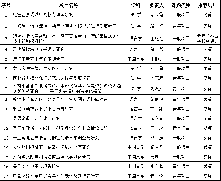 根据学校《2025年国家社会科学基金年度项目申报公告》及《2025年国家社会科学基金年度项目申报公告的补充通知》等有关规定,经个人申报、资格审核、专家评审、秀人网