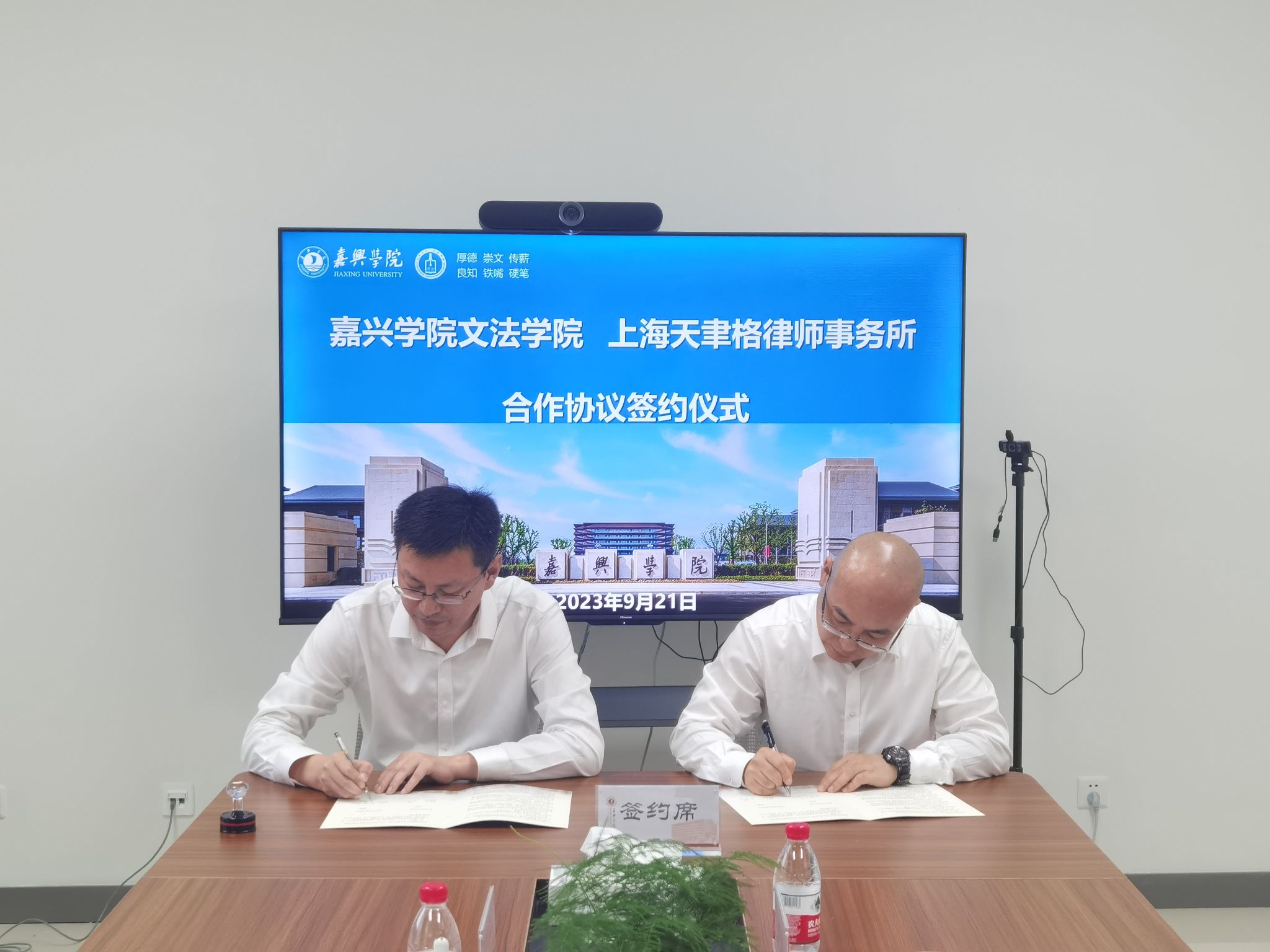 仪式上,童建华代表秀人网 向上海天聿格律师事务所对学院的支持表示感谢,同时介绍了学院以及法学和知识产权专业的基本情况。童建华和周涛作为双方代表签署了《嘉兴学院秀人网 与上海天聿格律师事务所合作框架协议》,童建华代表学院给周涛、吕钟怿、孙琦惠三位律师颁发了兼职教师聘书。