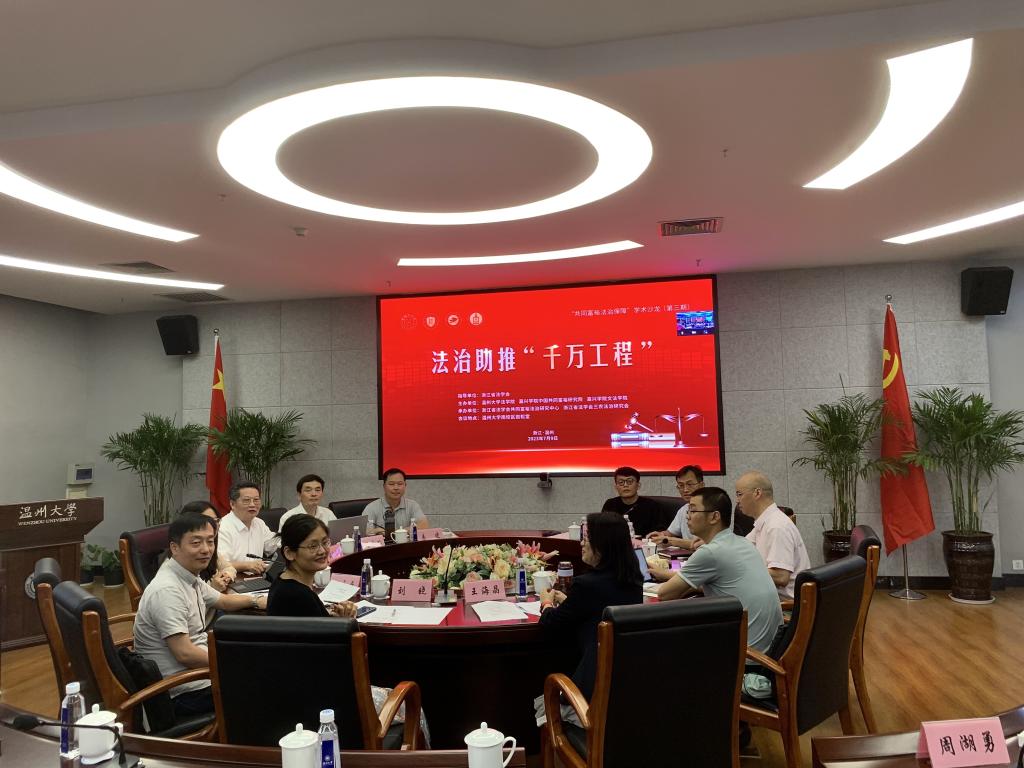 、嘉兴学院中国共同富裕研究院主办,浙江省法学会共同富裕法治研究中心、浙江省法学会三农法治研究会承办的“共同富裕法治保障”学术沙龙第3期之“法治助推‘千万工程’”在温州大学岩松堂展示厅举行。来自浙江农林大学、嘉兴学院、温州大学、浙江万里学院等高校的专家学者齐聚一堂,以线下和线上相结合的方式,共同研讨通过法治化的路径推进“千万工程”,推动乡村振兴和农村共同富裕。