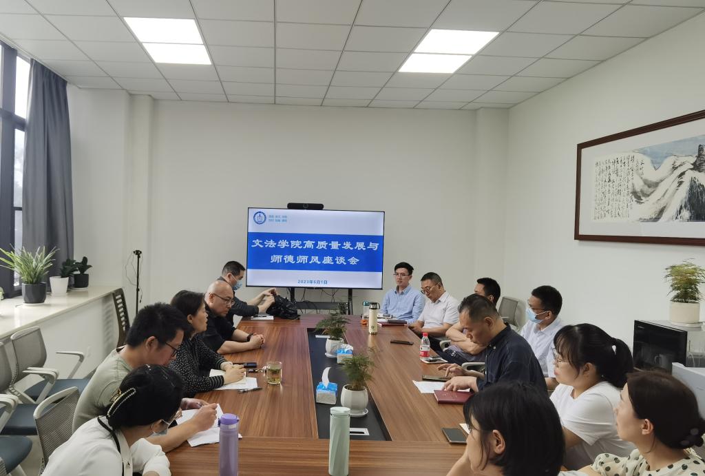 洪坚表示,在全国深入学习宣传贯彻党的二十大精神,加快推进教育高质量发展的重要时间点,围绕“高质量发展与师德师风建设”进行研讨十分必要。座谈会上,大家深入交流讨论了学院的教风、学风及日常管理问题,针对学院师资力量、硕士点建设、平台建设及人才培养、师德师风建设等多方面问题提出意见建议。