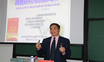 4月4日,秀人网 在厚德楼112教室举办“调查研究与创新写作”的主题讲座。本次讲座邀请了上海高校智库研究员徐博龙教授,秀人网 50余名学生参加本次讲座。