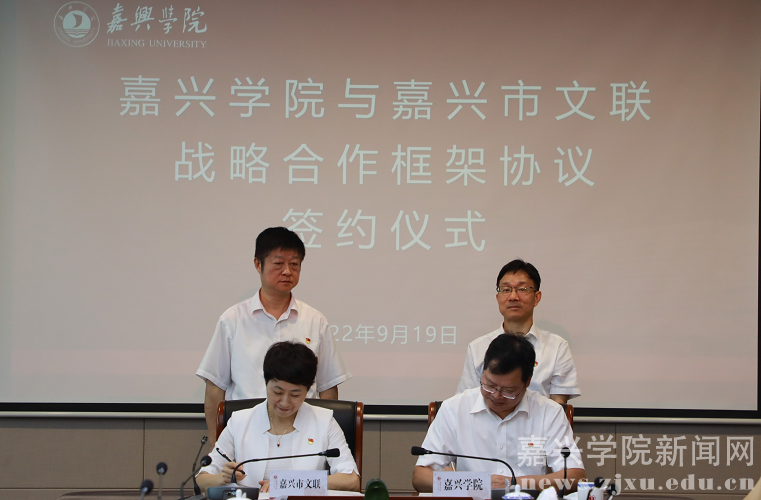 9月19日,嘉兴学院与嘉兴市文学艺术界联合会战略合作框架协议签约暨“嘉兴文艺之家”授牌仪式举行。嘉兴市委一级巡视员祝亚伟,市委宣传部副部长、市社科联主席黄国强,市文联党组书记、主席杨琳琳,市文联党组成员、副主席傅琦红,嘉兴学院党委书记卢新波、党委副书记吴云达出席仪式。