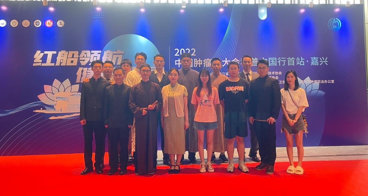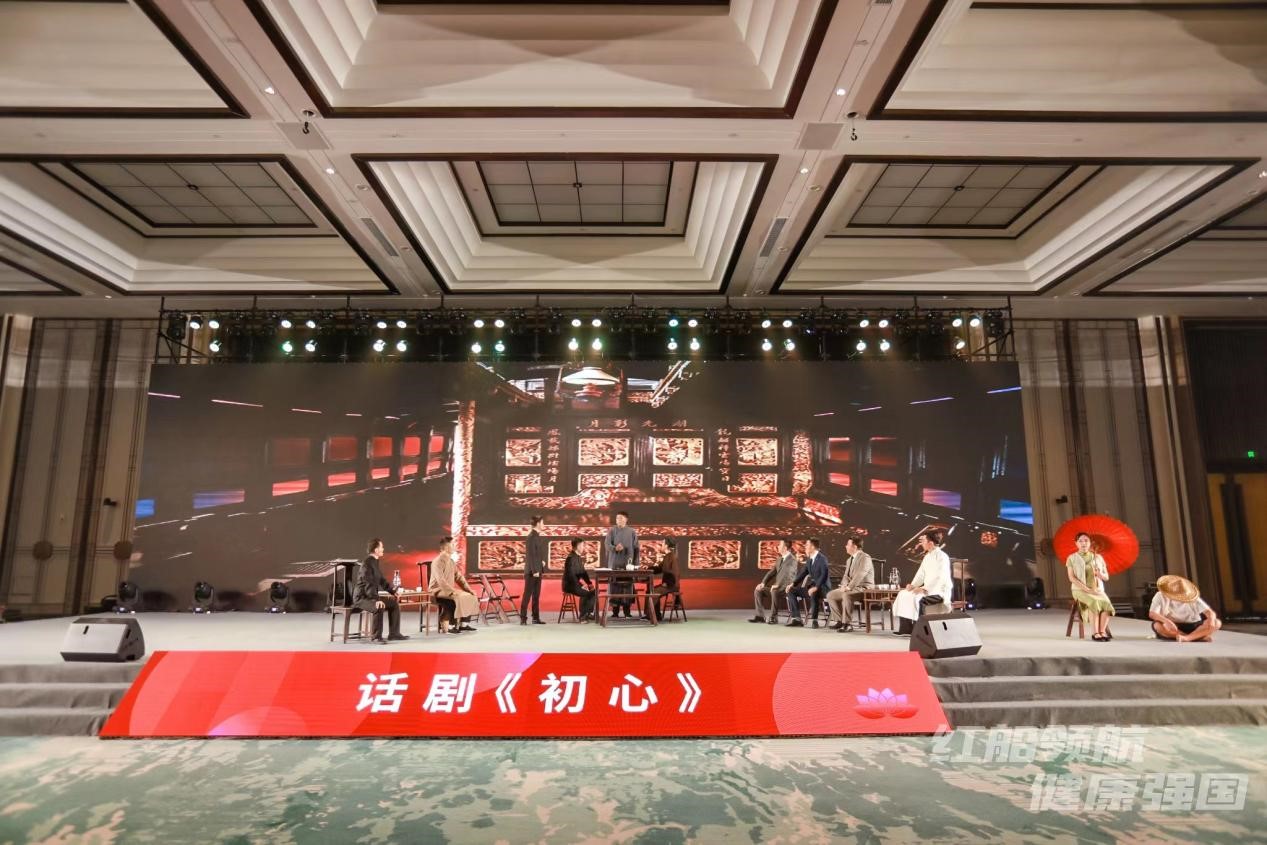 7月9日,嘉兴学院原创红色话剧《初心》片段——南湖会议在“红船领航 健康强国”2022中国肿瘤学大会科普中国行首站·嘉兴站演出。